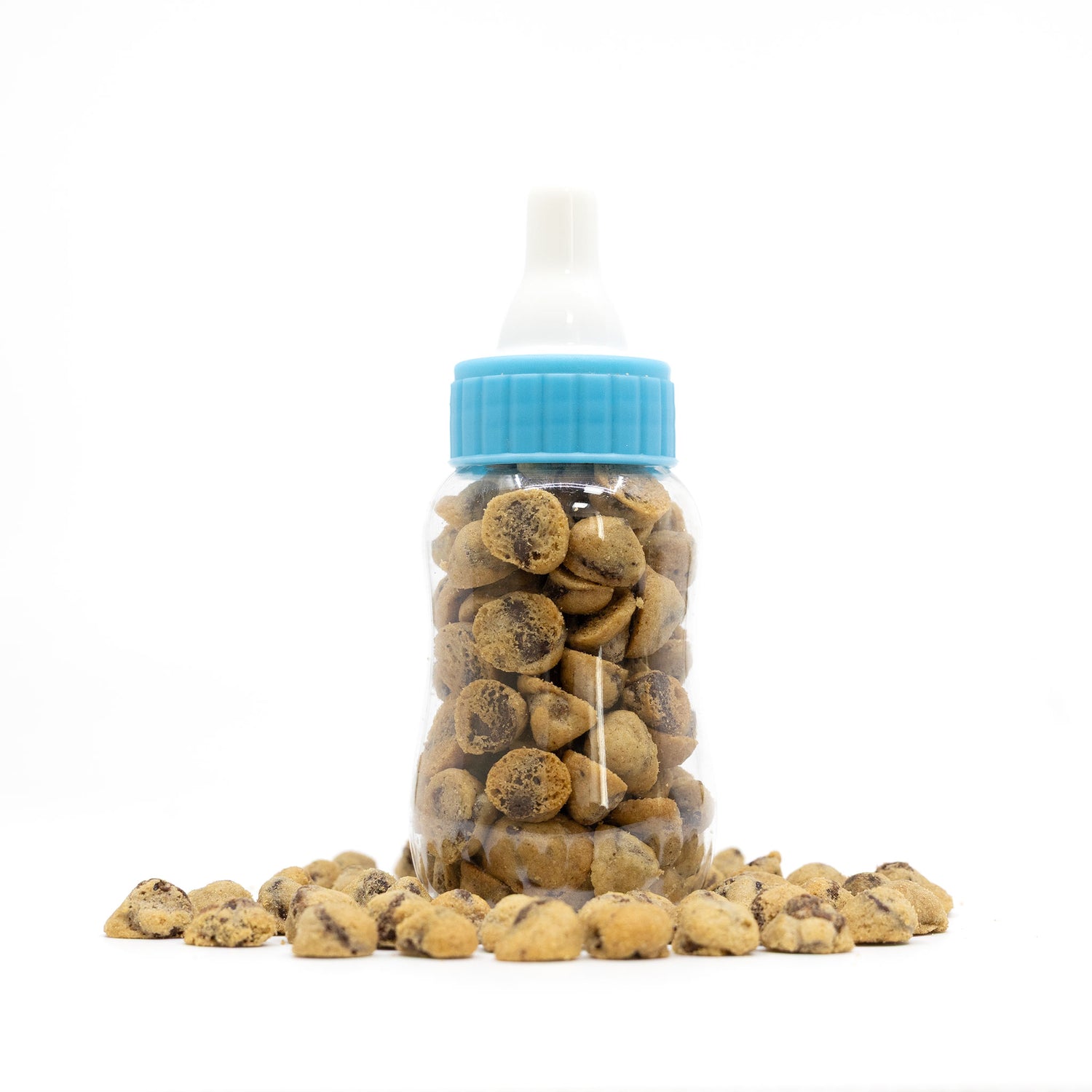 The perfect gift to celebrate a newborn's arrival. Your choice of Microchip Cookies nestled in an adorable blue baby bottle, finished with a hand-tied satin bow.
