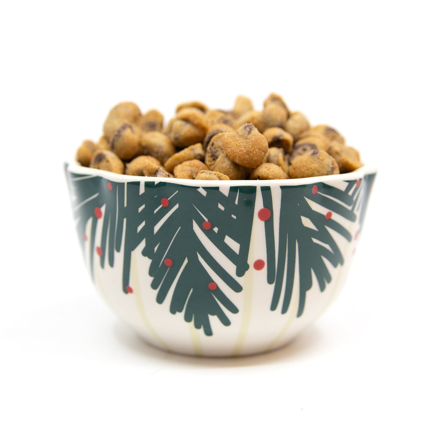 Microchip Cookies are meant to be seen and eaten. Show them off in our Balsam and Berry Ruffle Bowl. Dishwasher safe. (Cookies sold separately)