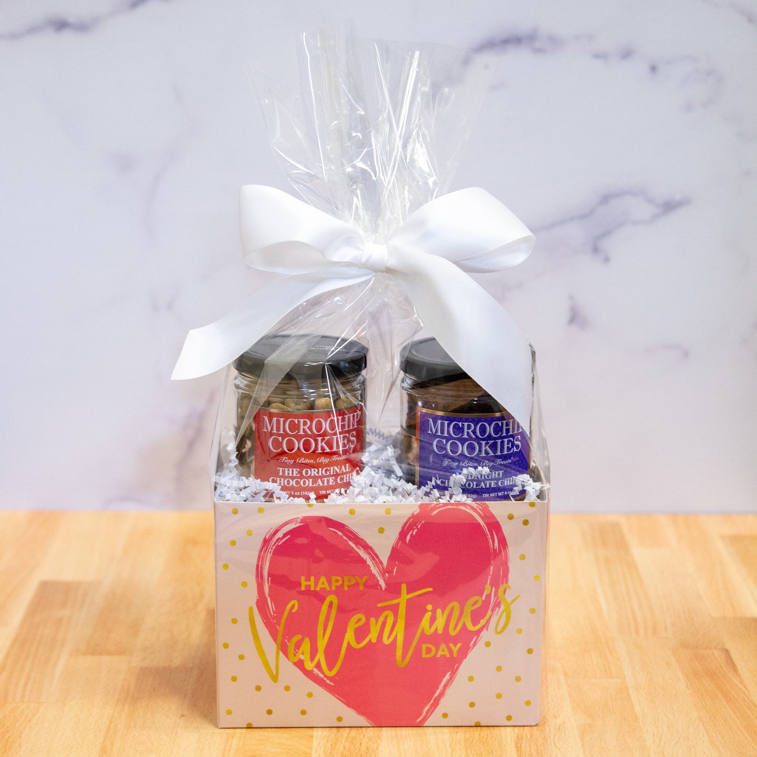This Valentine's duo delivers double the delight with our Original Chocolate Chip and Midnight Chocolate Chip Microchips nestled in premium glass jars. At half an inch in diameter, each tiny cookie packs enormous feelings—from the chocolate-chip perfection of our founding flavor to the sophisticated intensity of midnight cocoa. Because when you want to say "I love you" in the most unexpectedly perfect way, sometimes the smallest gestures create the biggest butterflies.