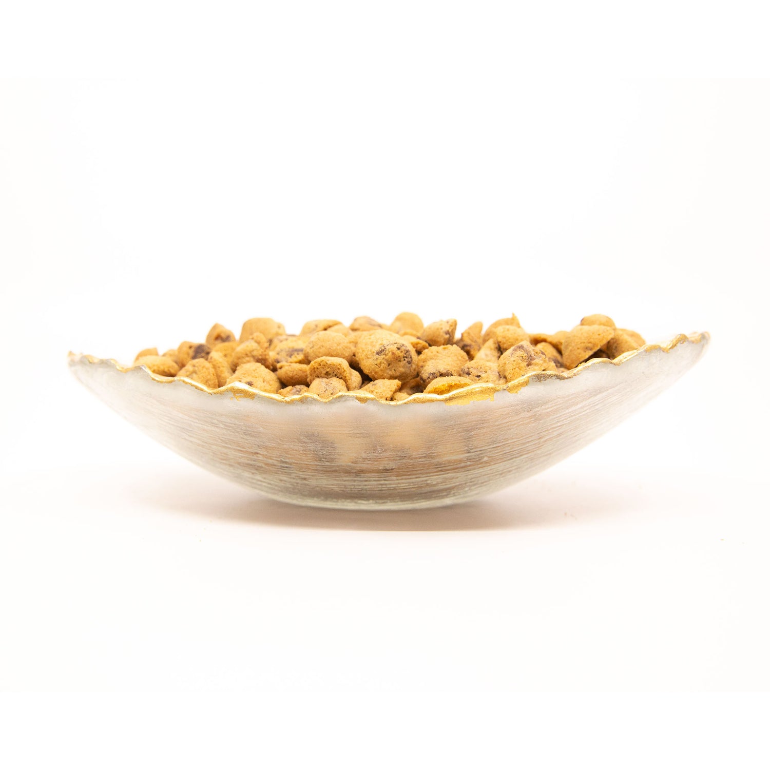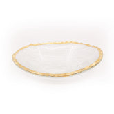 Microchip Cookies are meant to be seen and eaten. Show them off in our Jagged Gold Rim Clear Textured Bowl. Hand wash only. (Cookies not included)