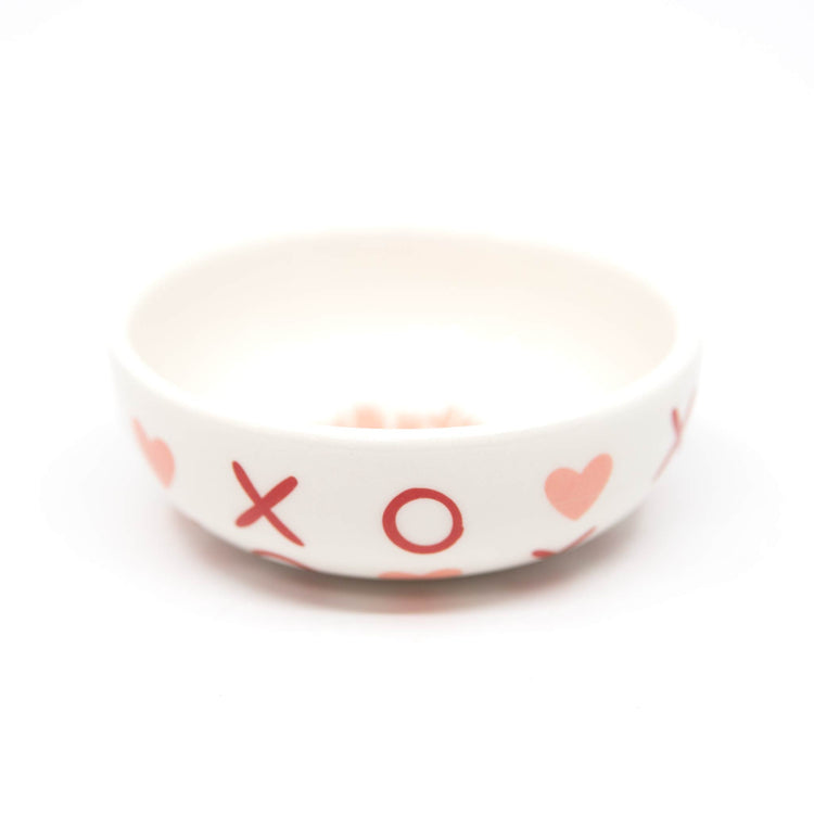 This charming 3.5" ceramic bowl transforms any Microchip moment into a romantic gesture worth remembering. The secret? A playful pink lipstick kiss inside the bowl—revealed only when your tiny treasures have been devoured—while X's, O's, and hearts dance around the exterior like sweet whispered promises.