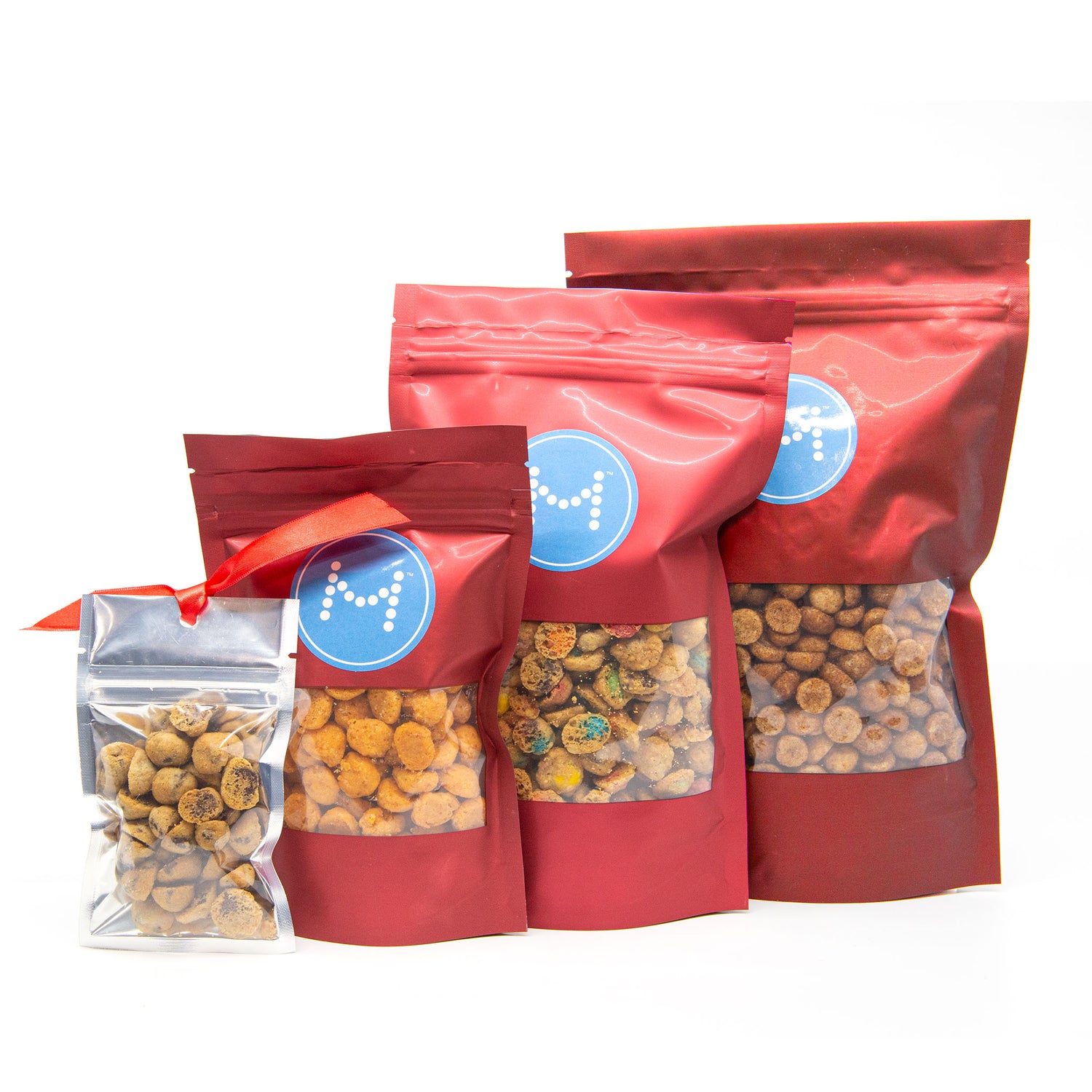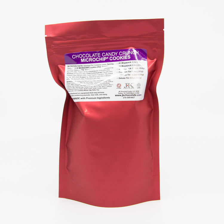 Eight ounces of your chosen Microchip Cookies in our smart, economical packaging. This resealable zipper bag features a clear window that showcases our impossibly tiny cookies while keeping them fresh and portable. The perfect size for personal stashing, sharing with friends, or discovering just how addictive half-inch cookies can be.