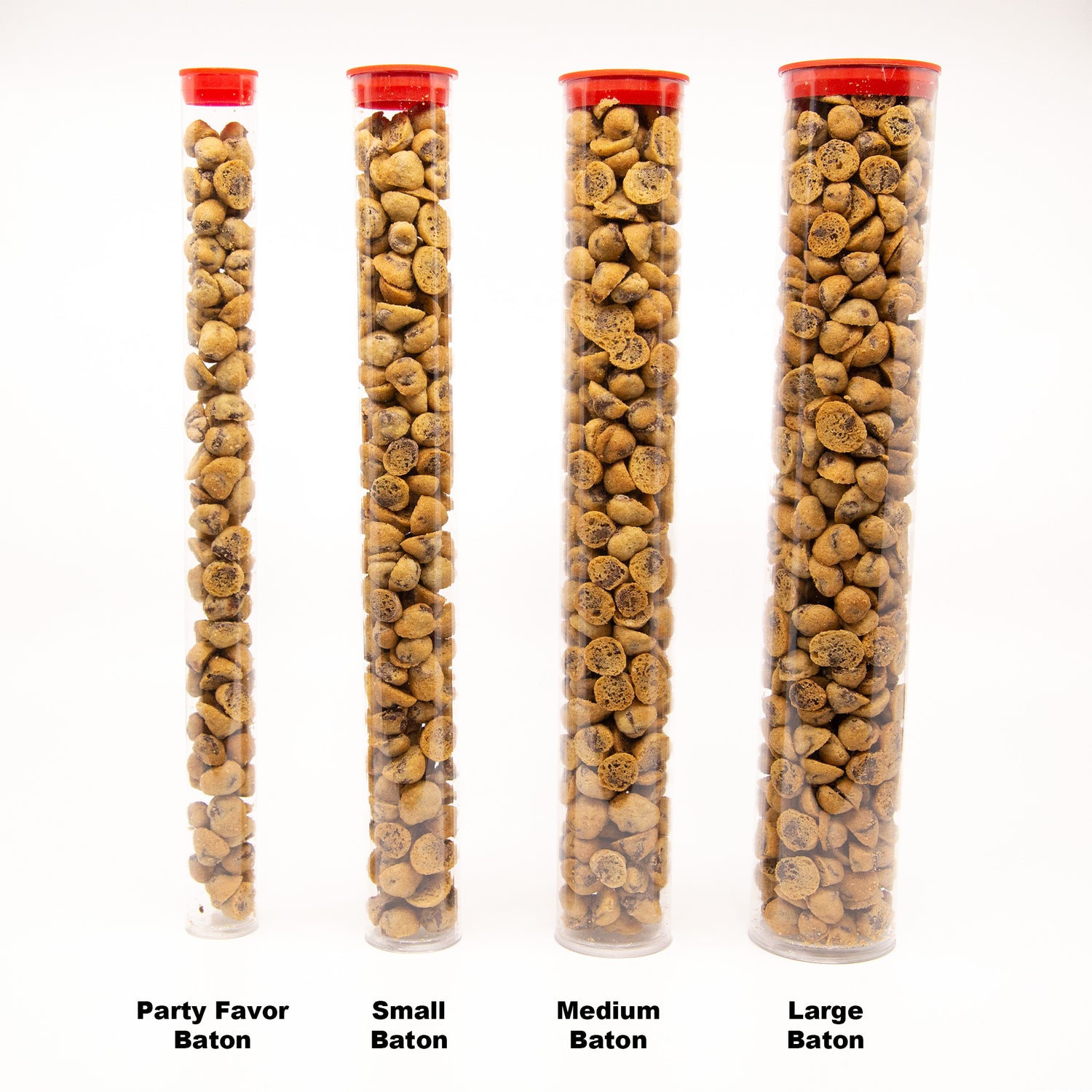 2.5 ounces of your chosen Microchip Cookies in a charming clear acrylic tube topped with a cheerful red cap and finished with your choice of hand-tied satin bow. This petite baton creates an elegant party favor that guests will actually want to keep, showcasing our impossibly small cookies in an unexpectedly sophisticated presentation.