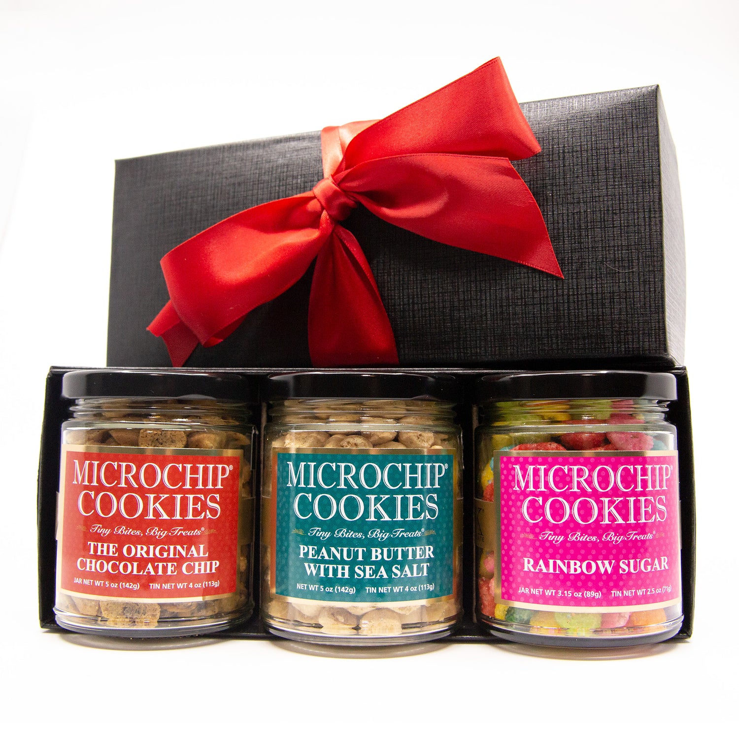 Presented in coordinated black gift boxes with vibrant hand-tied satin ribbons, this collection creates anticipation with every unboxing moment. Add custom gift messages to transform this already-special Chipportunity into three deeply personal connections.