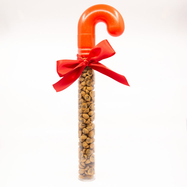 Only the freshest and highest quality ingredients go into Microchip Cookies, which are all baked from scratch in small batches. Perfect for thank you’s, employee gifts or just to show someone you’re thinking about them. The festive Medium Candy Cane is composed of a food-grade plastic tube with red candy cane top and hand-tied satin bow.