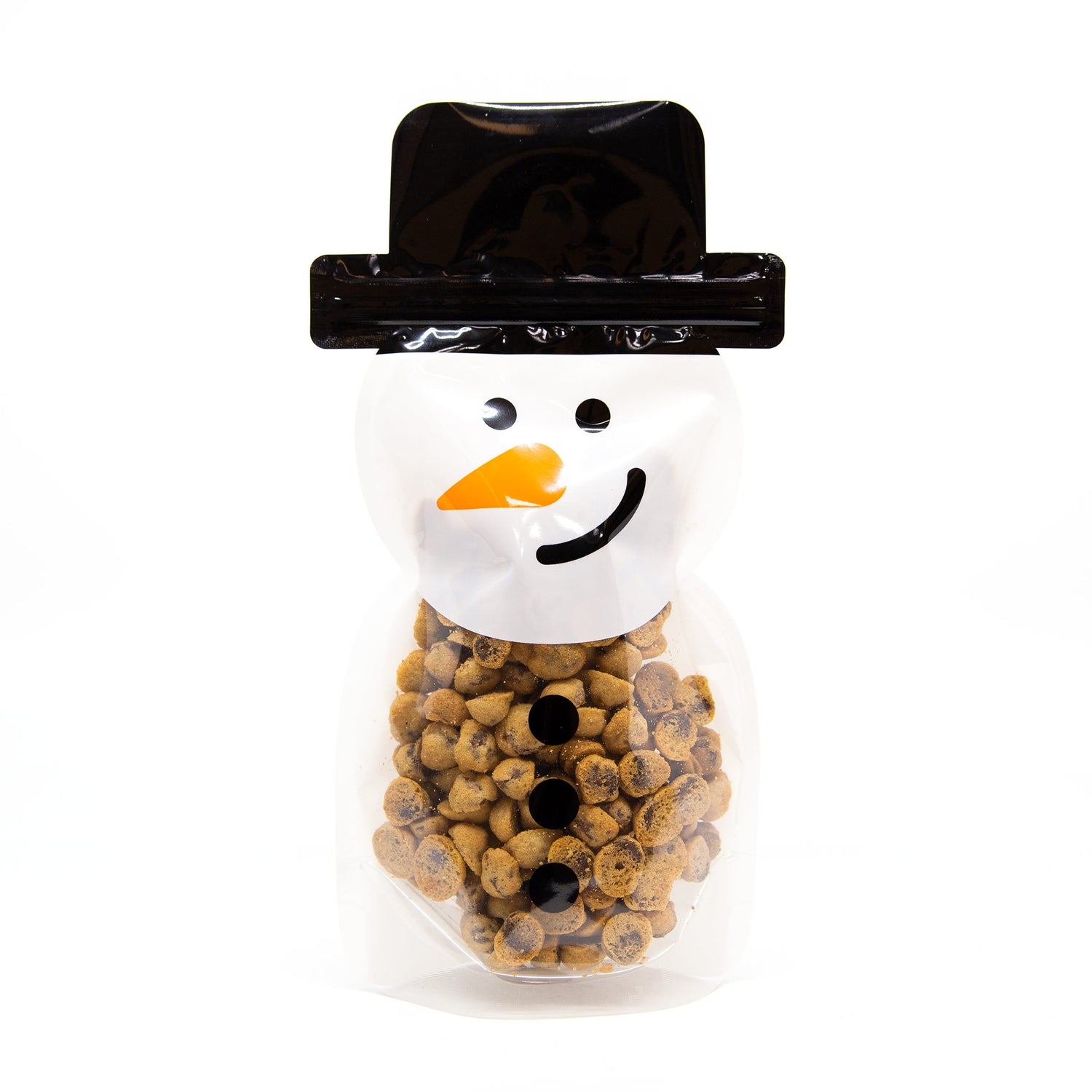Only the freshest and highest quality ingredients go into JK Chocolate Microchip Cookies, which are all baked from scratch in small batches. The Snowman Eco Pack is a resealable zipper bag filled with Microchip Cookies that’s great for gifting and refilling your JK Chocolate Microchip dishes and bowls, and even better for scooping up a handful of your favorite Microchip Cookie variety.