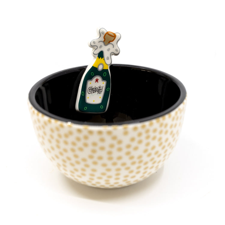 Pop the champagne—or at least serve the tiny cookies that make any moment celebration-worthy. This striking bowl features repeating gold dots and a charming champagne bottle embellishment that transforms Microchip Cookies into party centerpieces. Perfect for the friend with something to celebrate (promotion, engagement, survived another Monday), the host who throws legendary gatherings, or anyone who believes that life's too short to wait for special occasions. Fill it with cookies for your next party, gift it to someone whose wins deserve recognizing, or keep it on display as a reminder that with the right cookies and the right bowl, every day is worth toasting. Microchip Cookies sold separately, but the festive spirit? That's guaranteed.