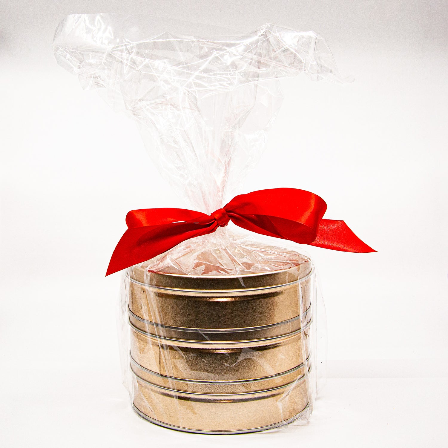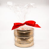 When you want to make a statement that's both substantial and refined, the Premium Tin Trio Tower delivers the perfect balance. Three elegantly proportioned food-grade aluminum tins, artfully stacked and finished with hand-tied satin ribbon—creating a gift that feels both generous and gracefully sized.